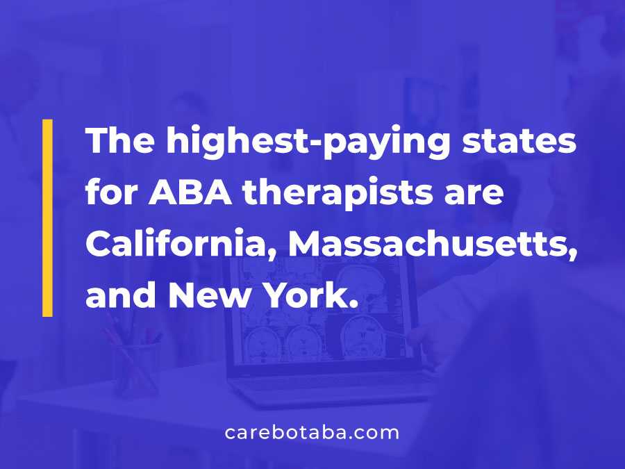 - The highest-paying states for ABA therapists are California, Massachusetts, and New York.